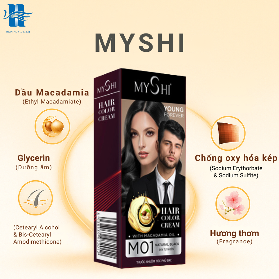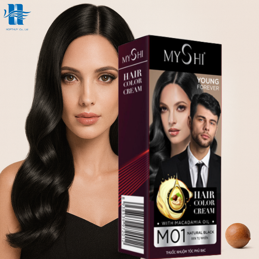 - Tên sản phẩm: Thuốc nhuộm tóc phủ bạc MyShi Hair Color Cream M01 – Đen tự nhiên
